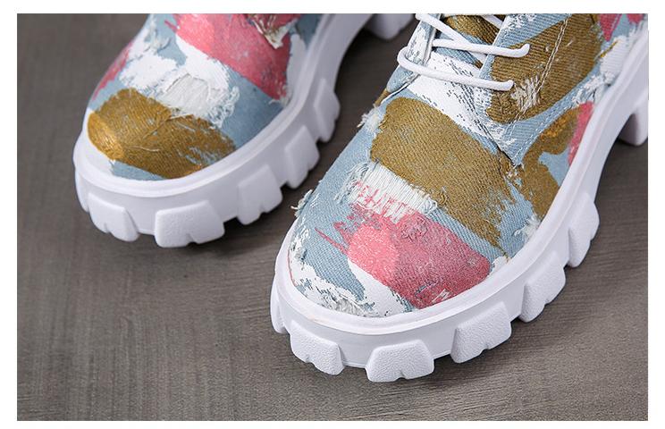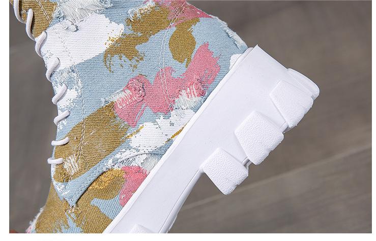 • 2024 Autumn New Korean Version Of Martin Boots For Women Low Square Heel Washed Camouflage Short Boots Low Boots