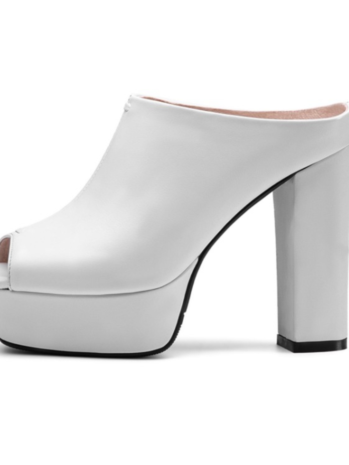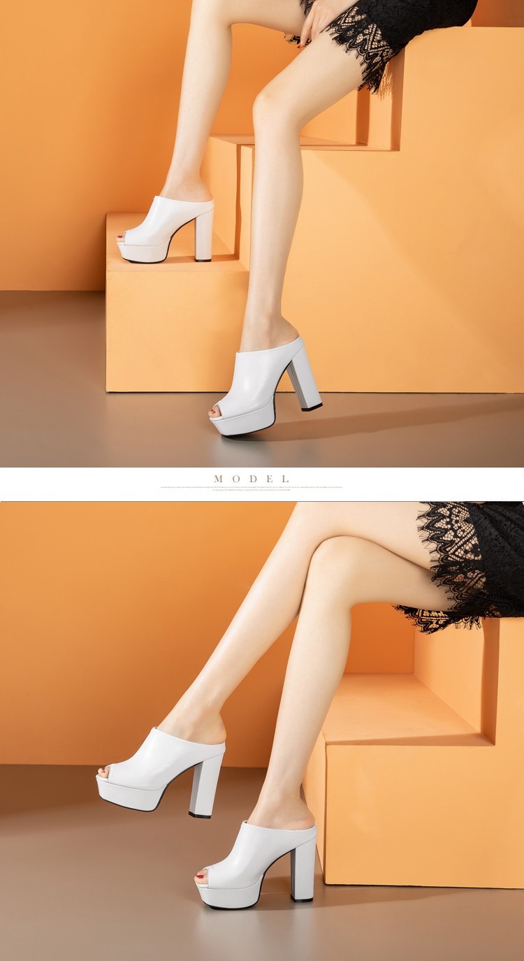2024 Summer New Super High Heels Chunky Waterproof Platform Leather White Fish Mouth Shoes