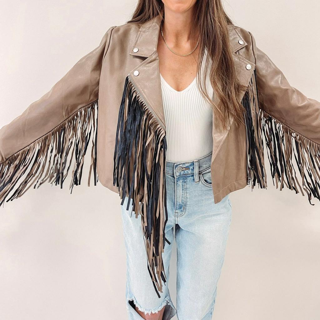 Brown Fringe Faux Leather Jacket