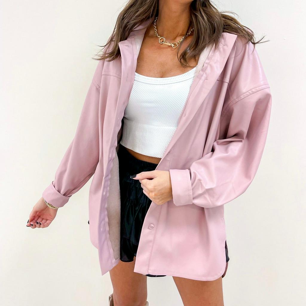 / Pink Leather Shacket