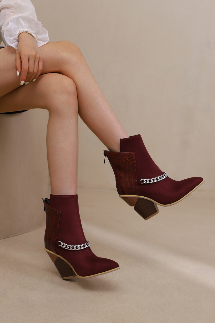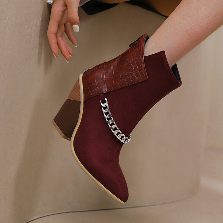 • Pointed Frosted Short Boots For Women Autumn And Winter Boots 2024 New Large Size Thick Heel Retro Western Cowboy Boots Short Boots