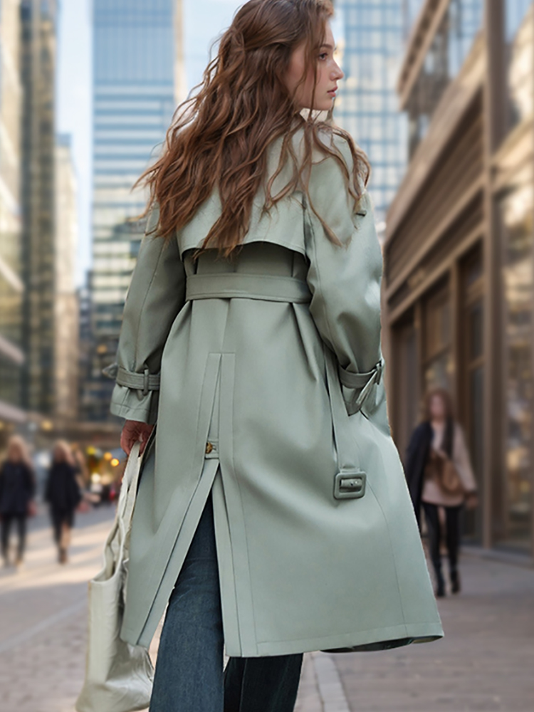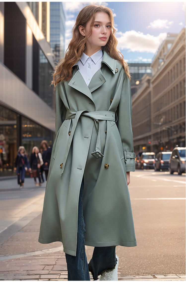 • Popular Trench Coat Women 2024 Fall/Winter New Mid-Length Coat Green