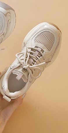• Summer New Increase Thick Bottom Thin Mesh Surface Breathable Sneakers Apricot