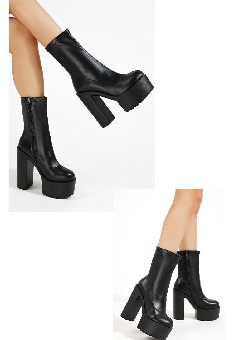Women S Platform Shoes Gogo Ankle Boots Chunky Heel Square Toe Short Boots
