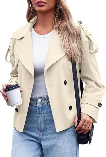 Women S Short Trench Coat Casual Double Breasted Short Jacket Autumn Fashion Outerwear With Belt