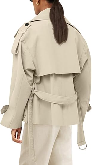 / Women S Short Trench Coat Casual Double Breasted Short Jacket Autumn Fashion Outerwear With Belt