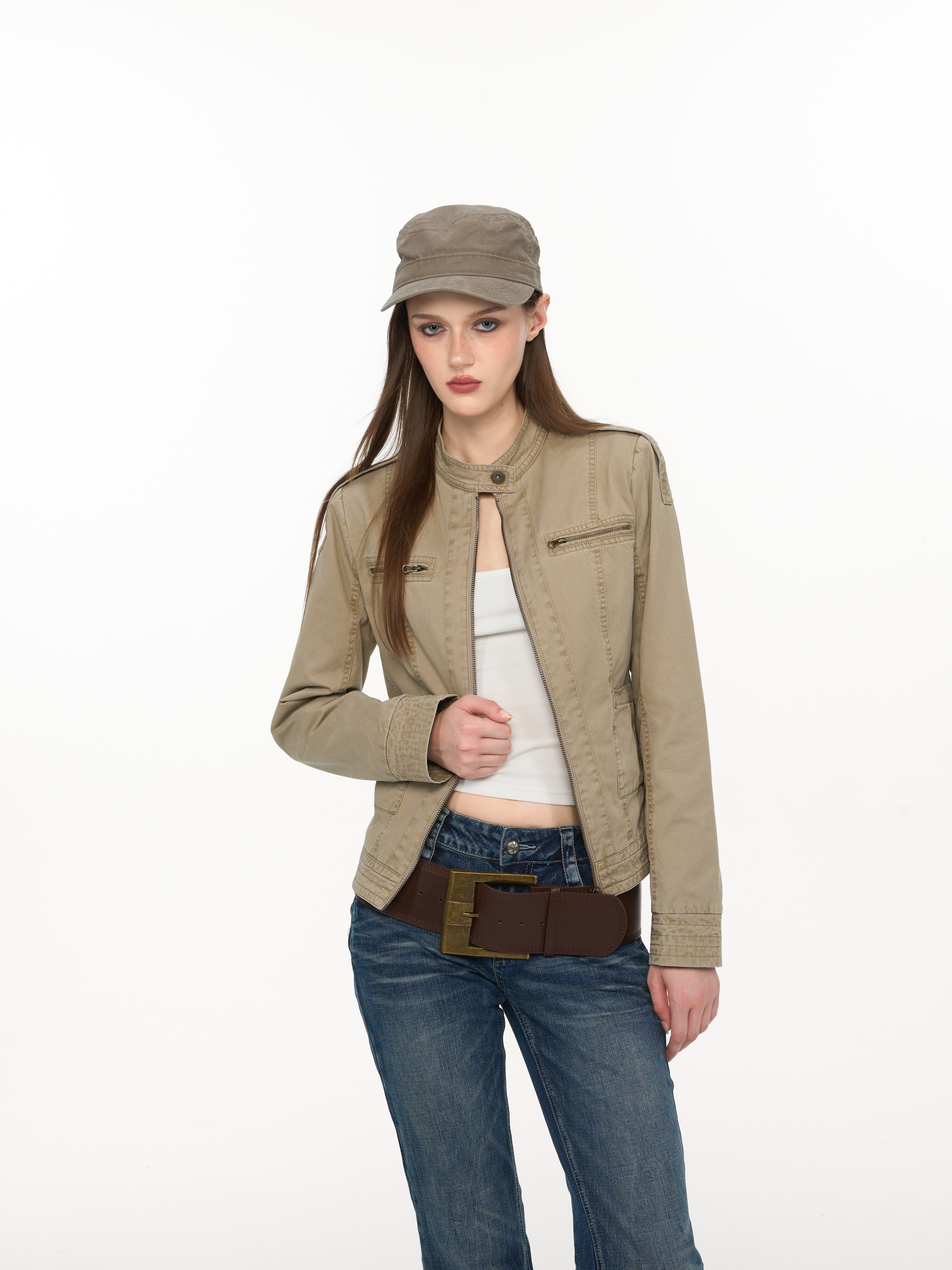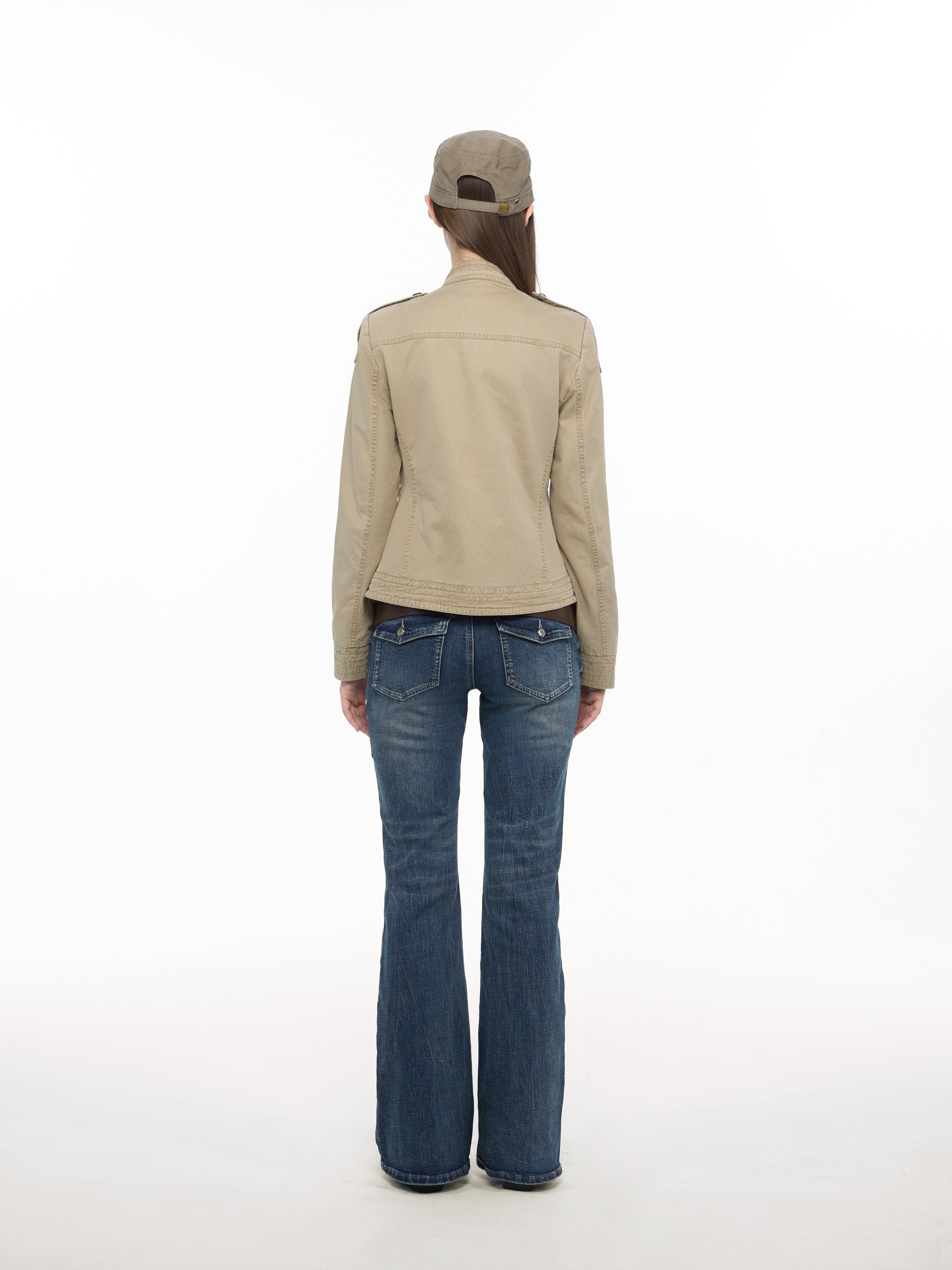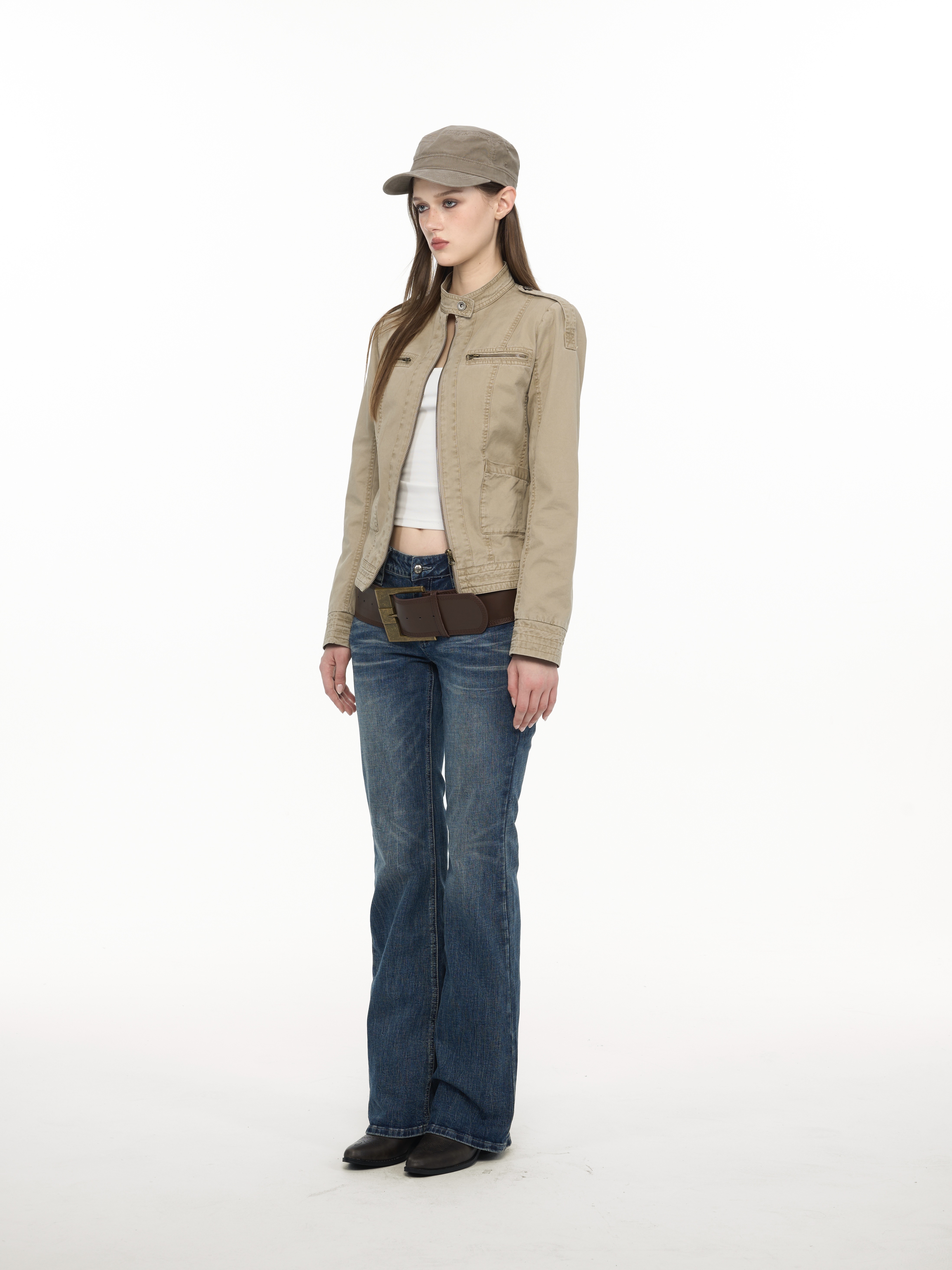 / Women's Cropped Denim Jacket, Utility Style with Long Sleeves